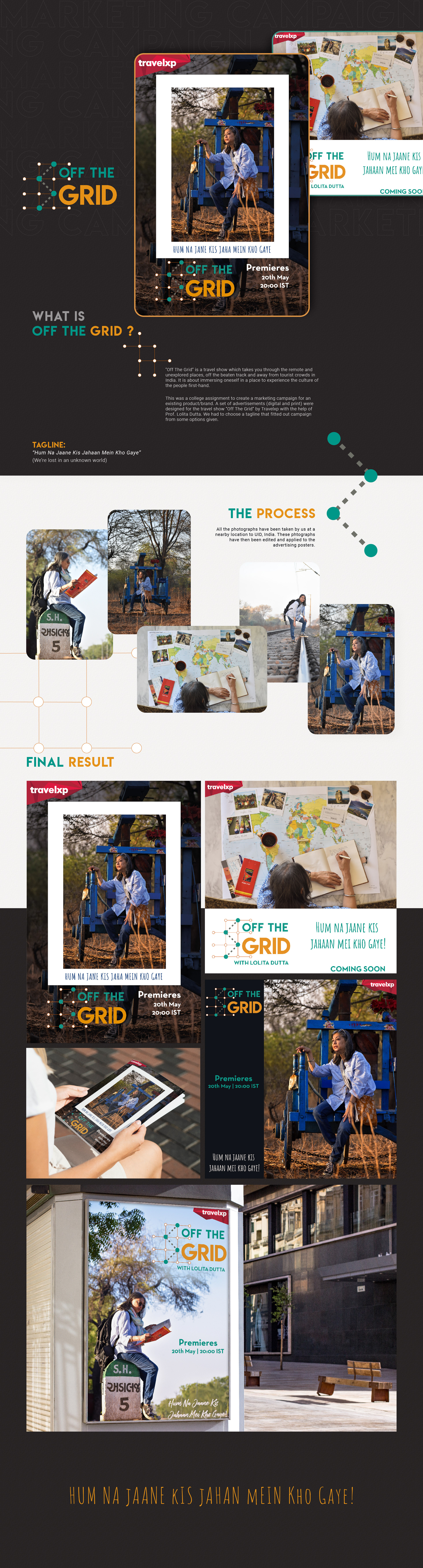 "Off The Grid" is a travel show by Travelxp and this project focuses on advertising the show through print and digital media.